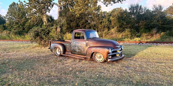 Our 1954 Chevrolet 3100 3 window pickup truck. A very colorful blue patina adds a bit of rustic charm to your pictures and events. A gray interior with a 60's era seat inserts with teal woven carpet. Ethel is the truck that brought Pictured Classics to life. Ethel will bring lasting charm to your photo and event needs.